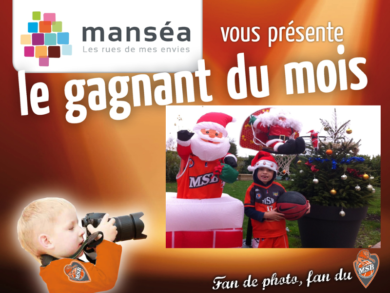 symbolisant votre soutien au MSB ! Envoyez vos clichés pris à Antarès, chez vous ou devant la vitrine d’un « magasin manséa ». Les photos seront présentées aux joueurs du MSB, qui désigneront « Le Fan du Mois » ! Pour le mois de Décembre c’est Jules qui a été choisi pour ce cliché de saison ! La photo sera diffusée sur les écrans d’Antarès les soirs de matches, sur le site et la page FB du MSB, ainsi que sur le site manséa. Jules gagne un chèque cadeau d’une valeur de 50€ à utiliser chez les commerçants du centre-ville, adhérents manséa. Au mois de juin, nous désignerons alors « Le Fan de la Saison » parmi tous les clichés primés !